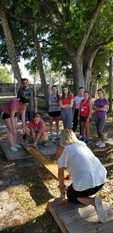 Honors Students learn the challenge of what it takes to help others make it across boards without touching the ground.